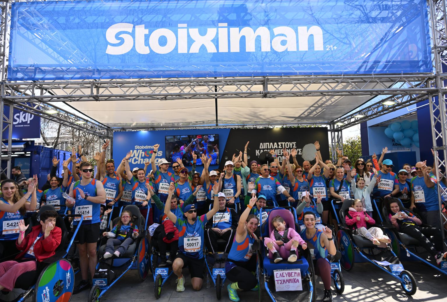 Άγγιξαν τις 1.000 οι συμμετοχές της ομάδας Stoiximan Wheels of Change, επιβεβαιώνοντας τη δυναμική και την απήχηση της πρωτοβουλίας. Παράλληλα, δεκάδες εθελοντές δρομείς συνόδευσαν αμαξίδια, δίνοντας τη δυνατότητα σε 30 άτομα με αναπηρία να ζήσουν την εμπειρία της συμμετοχής στον αγώνα.